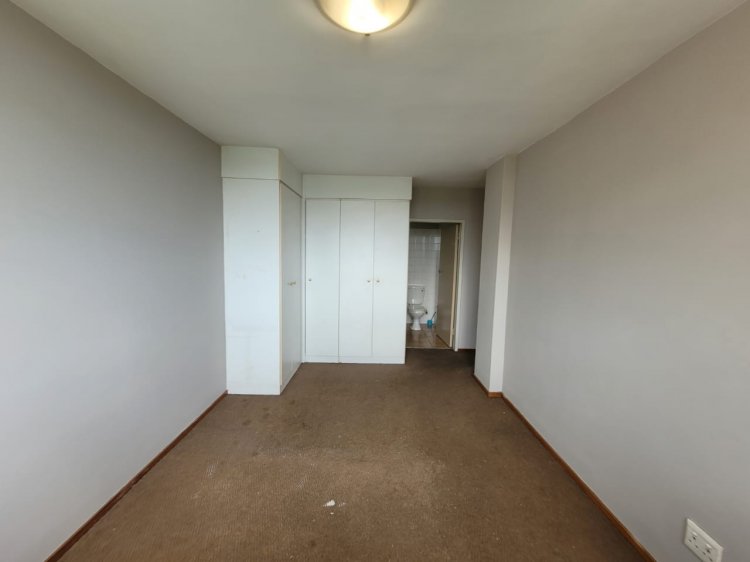 The unit features three spacious bedrooms, all fitted with carpets, with the main bedroom offering an en-suite bathroom for added privacy. The second bathroom services the remaining bedrooms. The kitchen is generously sized and includes ample cupboard space and a breakfast nook, making it ideal for everyday living. The open-plan living area is tiled and leads out through sliding doors to a small balcony, creating a pleasant indoor–outdoor flow.