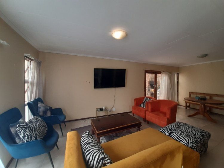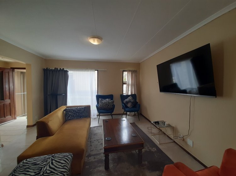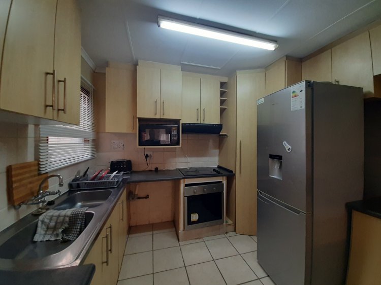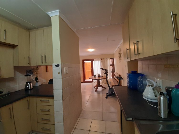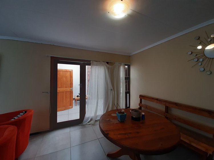 Lovely town house in a small, secure complex and close to schools, shopping centres and main arterial roads. Access to the complex is controlled and the neatly paved driveways and gardens add to the quality of the homes in the complex. The unit has 3 bedrooms, 2 bathrooms (one an en-suite), spacious living area flowing to a practical kitchen with a double sink. The dining room has a sliding door leading onto a private enclosed patio, with a built in braai and tiled floors, on the side of the home. The single garage has an internal door opening onto the patio. The unit has prepaid electricity and water is included in the monthly levies.