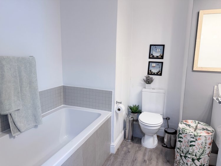 The apartment features two en-suite bedrooms plus a well-sized family bathroom, ideal for both families and those seeking a smart investment opportunity. As you enter, you’re greeted by a charming courtyard garden, creating a warm and private welcome.