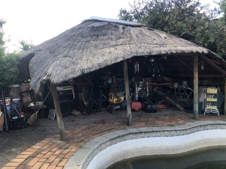 3 Bedrooms 2 Bathrooms ( main en-suite) Kitchen Dining room Lounge 2 Carports. Swimming pool and thatch needs repairs.