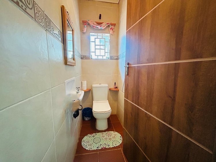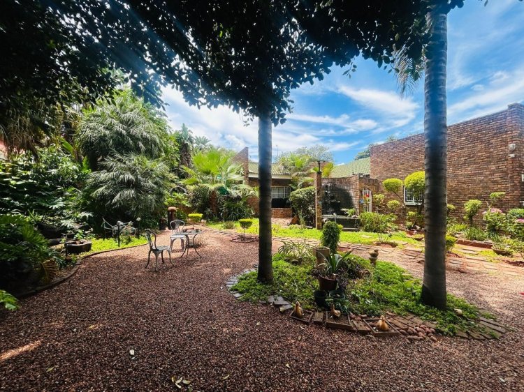 Outside: • A large lapa with a thatched roof for relaxed gatherings • A boma area for evening braais • A sparkling swimming pool with a fountain—perfect for summer fun • A peaceful garden with trees, plants, and a fish pond