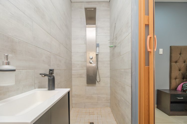 This home offers 3-bedrooms, 2-bathrooms (main en-suite) modern open-plan living with a relaxed holiday feel. The contemporary kitchen stands out with its elegant Caeserstone island, quality finishes, and plenty of built-in storage for a neat organised space.