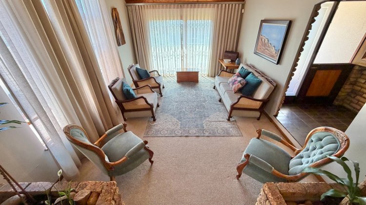 Set high on the slopes of Mountainside, this character-filled home enjoys sweeping views and a sense of space that is increasingly hard to find. The property offers four bedrooms and four bathrooms, with a well-considered layout that includes a formal lounge, a second lounge ideal as a TV room, a separate dining area, and a generously sized kitchen with a large central island that forms the heart of the home. An enclosed braai and entertainment room flows seamlessly to a large patio, where incredible views create the perfect backdrop for entertaining or quiet relaxation. This is a house that would be easy to renovate into something modern, thanks to its excellent proportions and solid structure. The braai room can also be linked to the rear storeroom to create a separate flat with minimal effort, ideal for dual living, guests, or income potential.