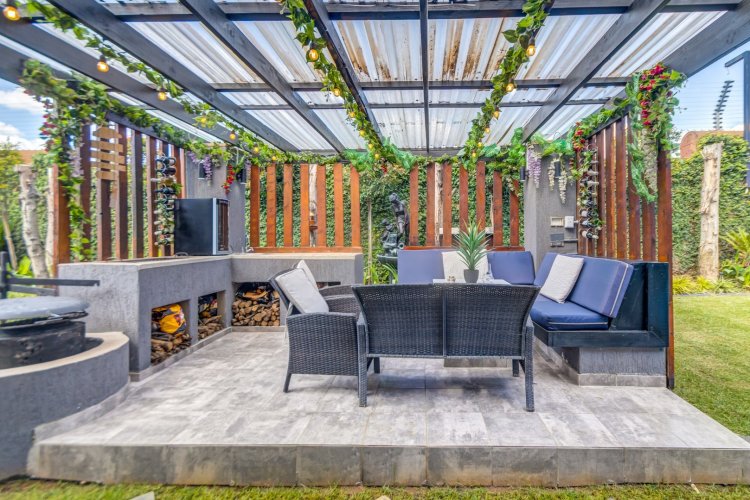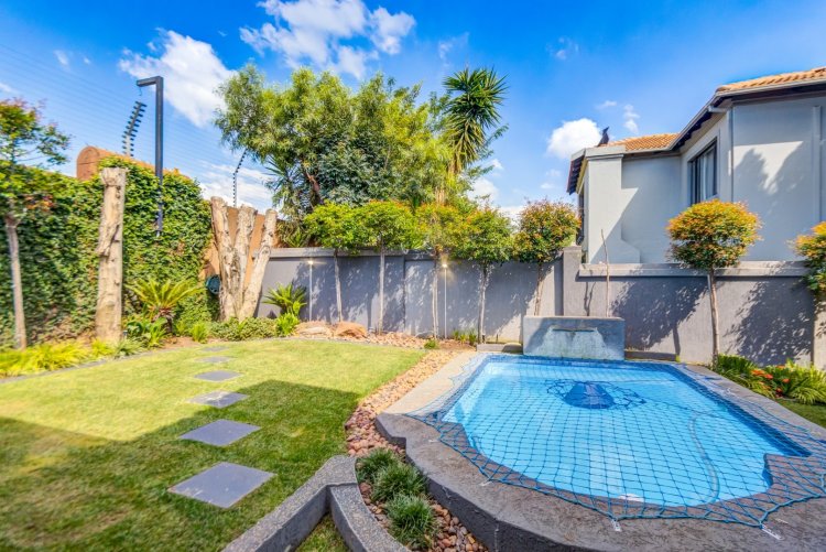 Downstairs offers a guest bedroom en suite and a guest loo. Upstairs features three bedrooms, two bathrooms, including the main en suite, generous cupboard space, and a private cinema room off the main bedroom for family movie nights. Entertainers' outdoor pergola with gas and wood fire burners, pizza oven, sparkling pool, and manicured modern garden. This exceptional home will not be on the market for long. Book your private viewing today.