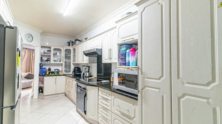 Upstairs, you'll find three well-sized bedrooms, all fitted with built-in cupboards, and two bathrooms, including a main en-suite. Additional features include a single garage , a single carport, and a handy storeroom neatly tucked away under the staircase.