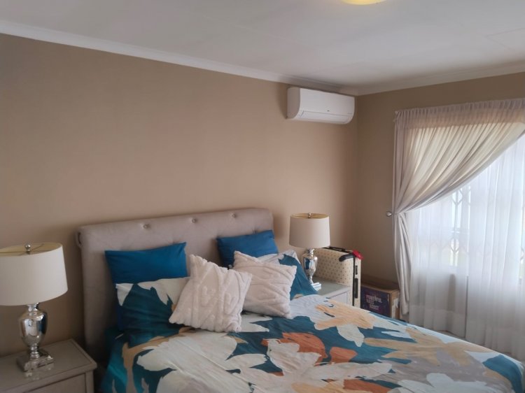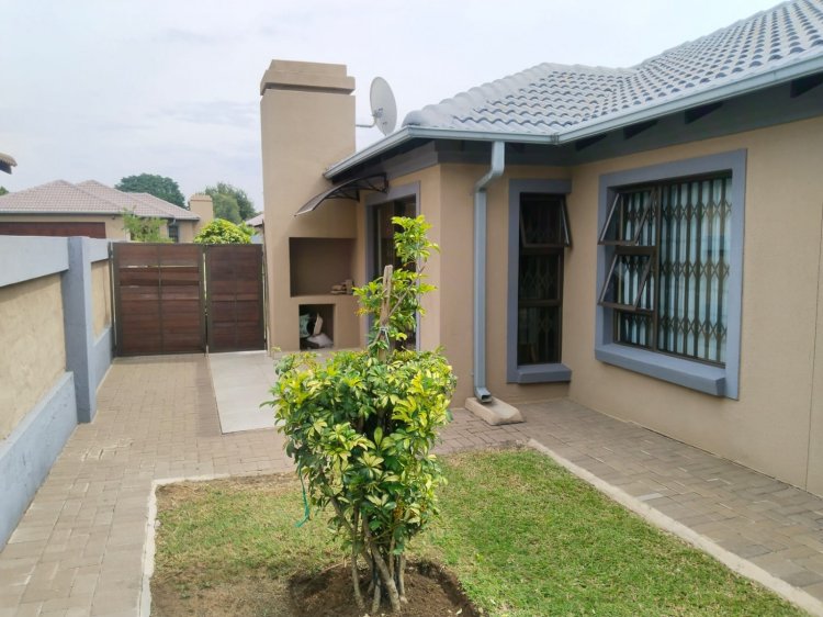 The yard consists of the following: - Three bedrooms with main en-suite - Two bathrooms - Kitchen with granite tops - Breakfast nook - Scullery - Lounge - Dining room - Wendy house negotiable with seller. - Air condition - Built-in braai - Double garage - Two open parking bays - 24 hour security